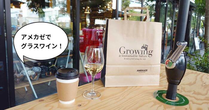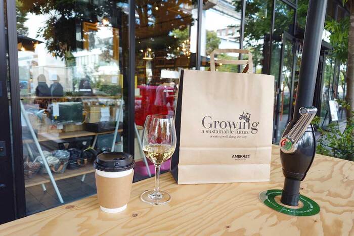 セルフ式で気楽にナチュラルワイン!グリーンスプリングスにある食のセレクトショップ『AMEKAZE TACHIKAWA(アメカゼ タチカワ)』でグラスワインが飲めるようになってる