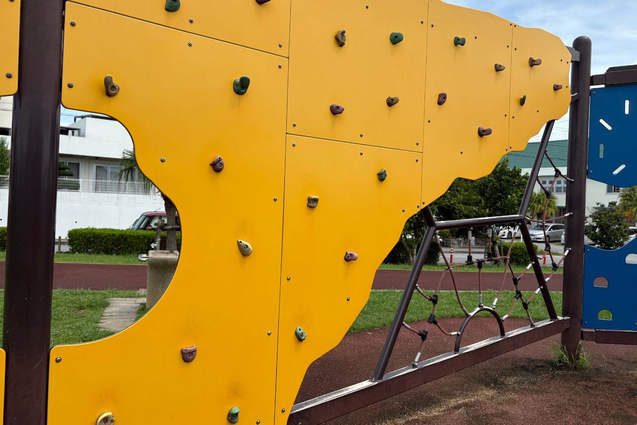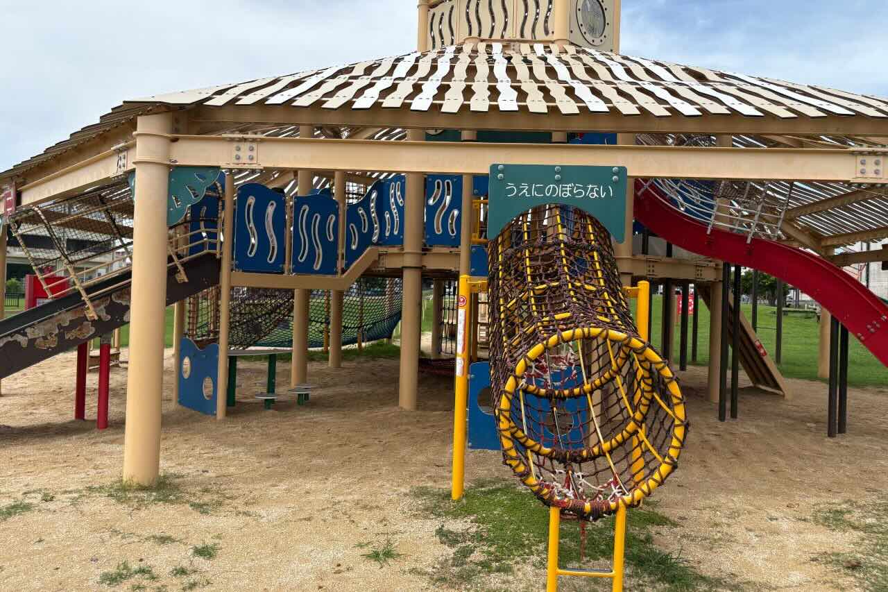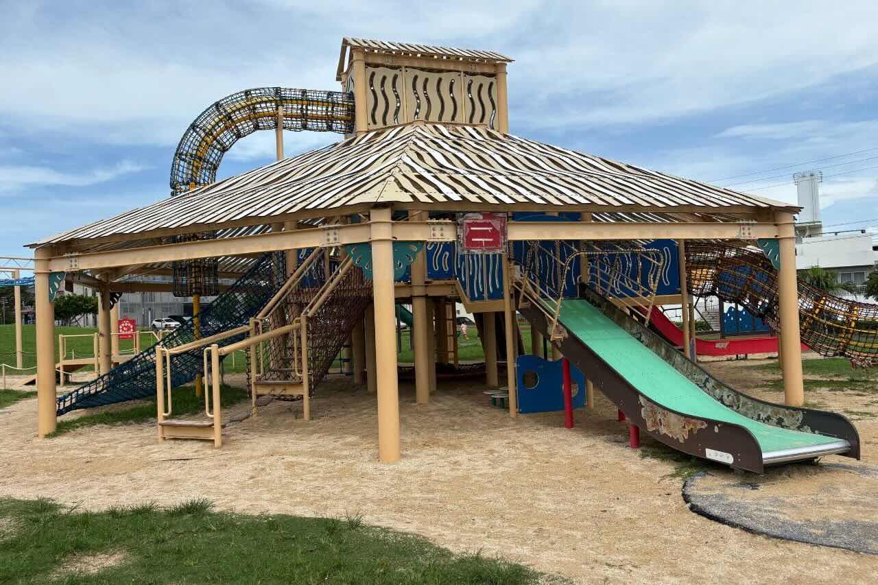 よーいドン!50メートルトラックと屋根付巨大遊具で走りまわれる若夏公園(沖縄市)