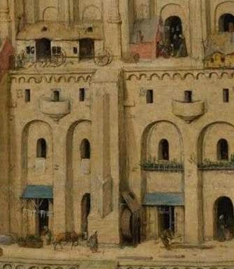 中世においても、《バベルの塔》はステンドグラス、フレスコ、板絵などで表現されてきました。しかしブリューゲルは、それまでにない規模で塔の建設を描き、人間の尊大さや神への愚かな挑戦を風刺的に表現したのです。だからこそ建物の構造も矛盾が多く、「永遠に塔は完成しない」と示唆しているのではないでしょうか。
