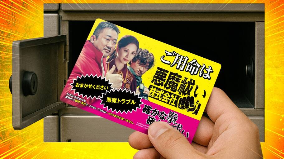 公開初日となる12月12日(金)より、「“悪魔祓い株式会社”特製冷蔵庫マグネット」を先着でプレゼント。冷蔵庫に貼る販促用マグネット広告をイメージしたデザインとなっており、<ご用命は悪魔祓い株式会社>というキャッチフレーズに合わせて、拳で悪魔を倒すバウ社長、エクソシストのシャロン、情報収集担当のキムという会社のスタッフ3人の写真を大きく使用。<おまかせください><悪魔トラブル>など、思わず電話をかけたくなりそうなキャッチーなデザインに仕上がっている。