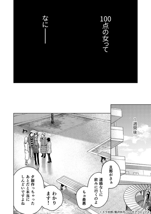 【漫画】「旦那さんかっこいい」自称・100点女の発言に戸惑い…不穏な笑みの意味は?『60点の夫婦でいいのに』#2
