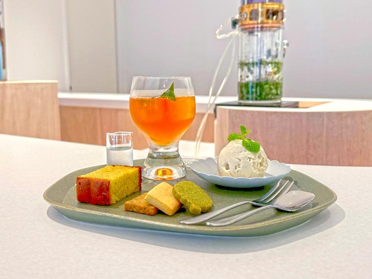 スイーツは、長崎・文旦堂のさぼんカステラに日替わりのクッキー3種、さらに選べるアイスクリーム付き。