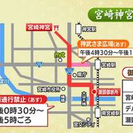 戸畑区では、戸畑駅北口方面およびと渡船場方面で交通規制を実施。時間は午後6時~午後9時までです。