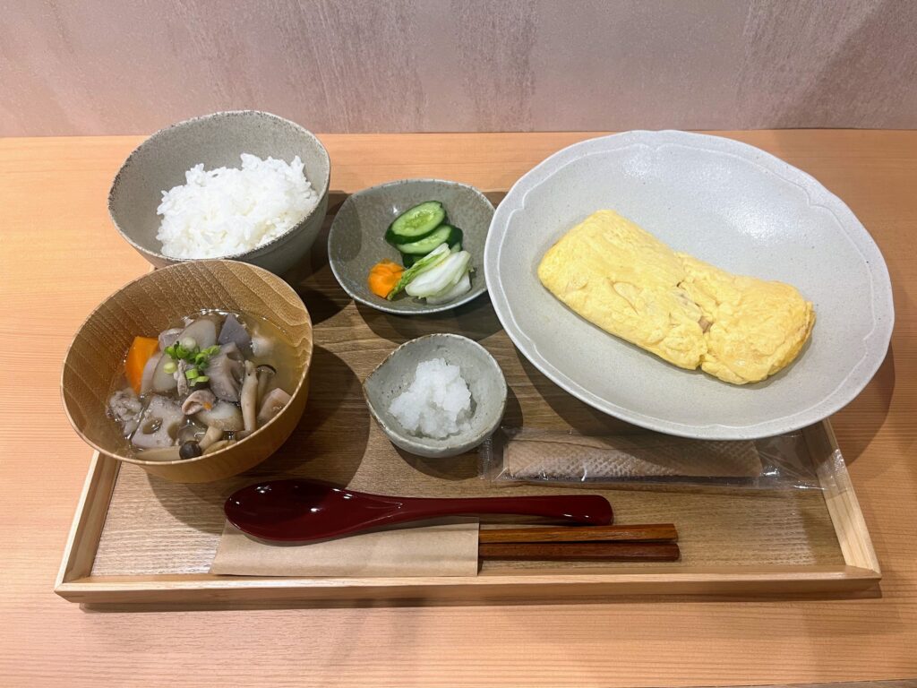 出汁の効いたしっかり味のだし巻き玉子に、さっぱりとした大根おろしやお新香。全体のバランスがよく考えられ、最後まで飽きずに楽しめる大満足の定食でした。
