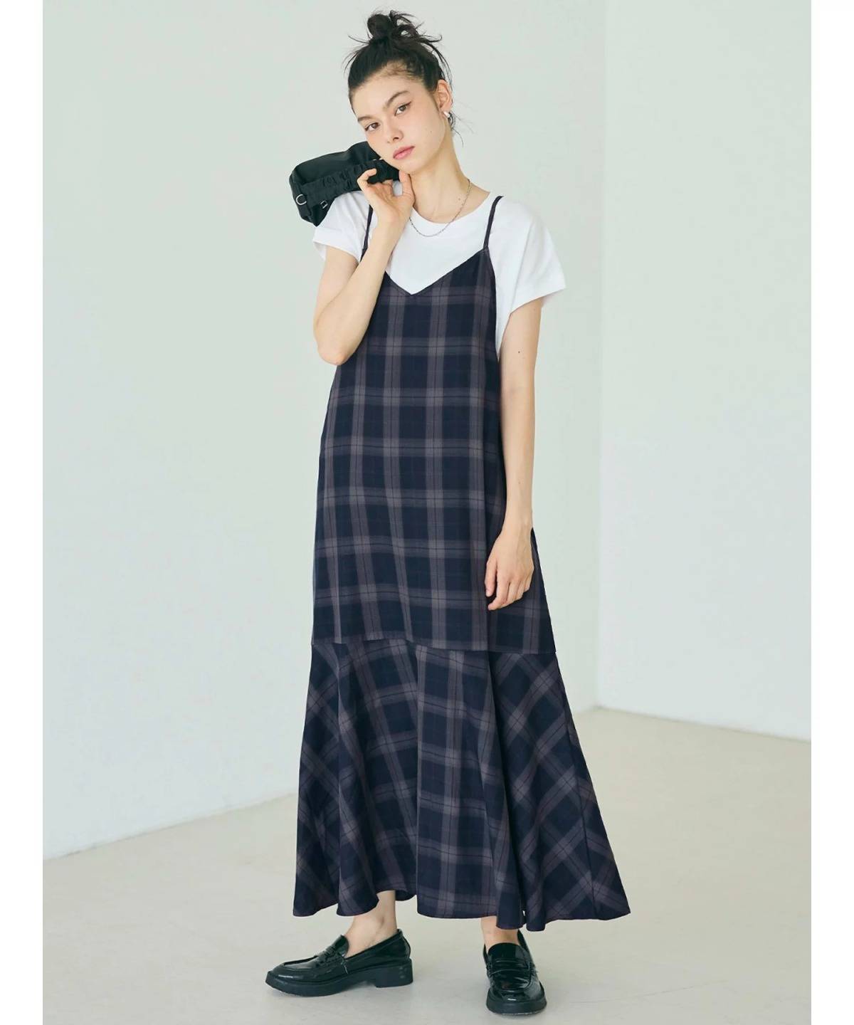 coca チェックキャミワンピース