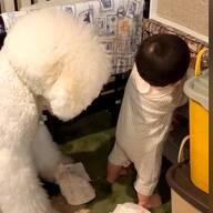 赤ちゃんと犬が『悪さをしているな』と思ったら、密会していて…怒るに怒れない『まさかの光景』が53万再生「食べないの偉すぎるw」「可愛い」