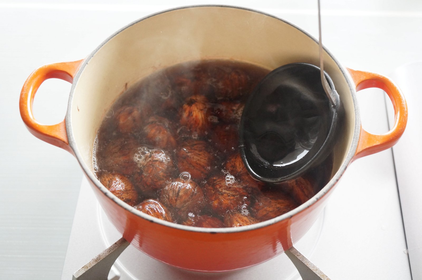「秋だなぁ。秋がきたなぁ」と感じながら、「渋皮煮の瞑想タイム」を経て、重曹で煮てアクを抜く作業を繰り返し行う。