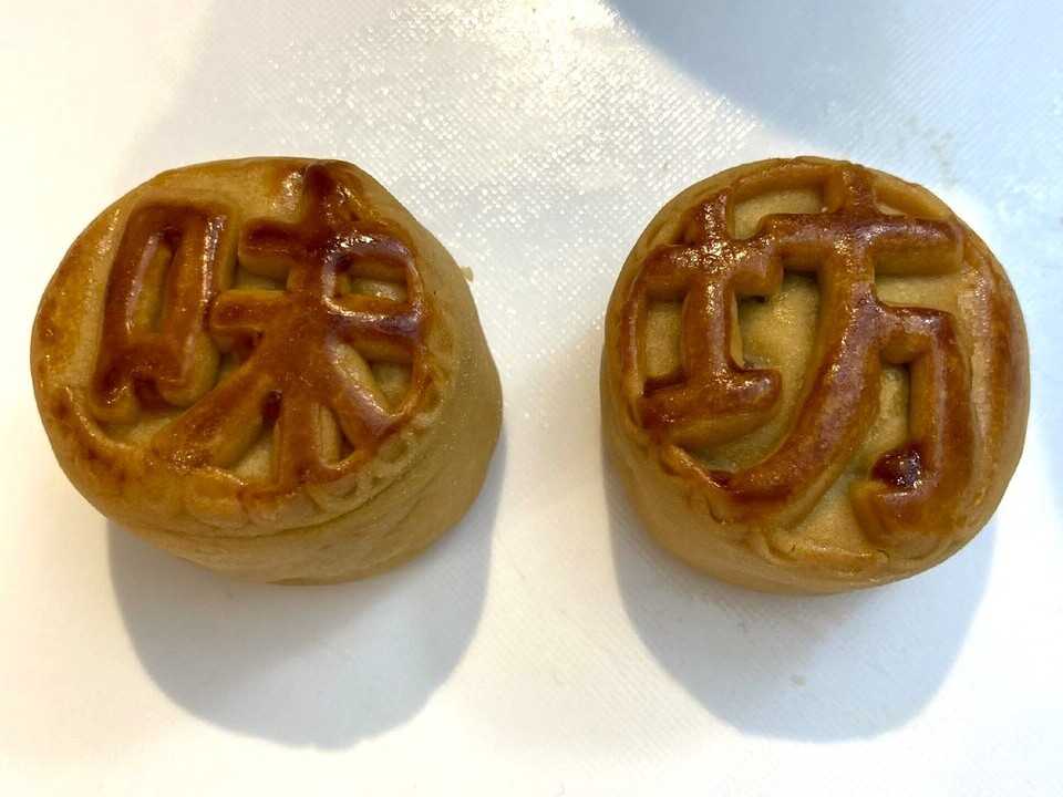 小豆、胡麻餡、中華圏でよくみるハスの実餡、珍しい棗(なつめ)餡、日本の秋に合わせた栗やさつまいも餡もありました。甘さは控えめから、グッと甘いものまで、また蛋黄(アヒルの塩漬け卵)の有無の違いもあります。ただ、蛋黄が入っているからと言って必ずしも塩味があるとは限らないこともわかりました。ナッツの食感は月餅には入れますが、”つぶあんは”一つもないのはちょっと不思議です。