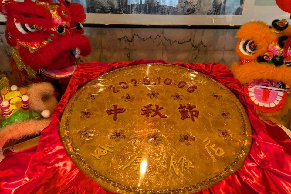 中村さんは中華街の「重慶飯店」で展示用の「巨大月餅」を見たことをシェアしてくれました。