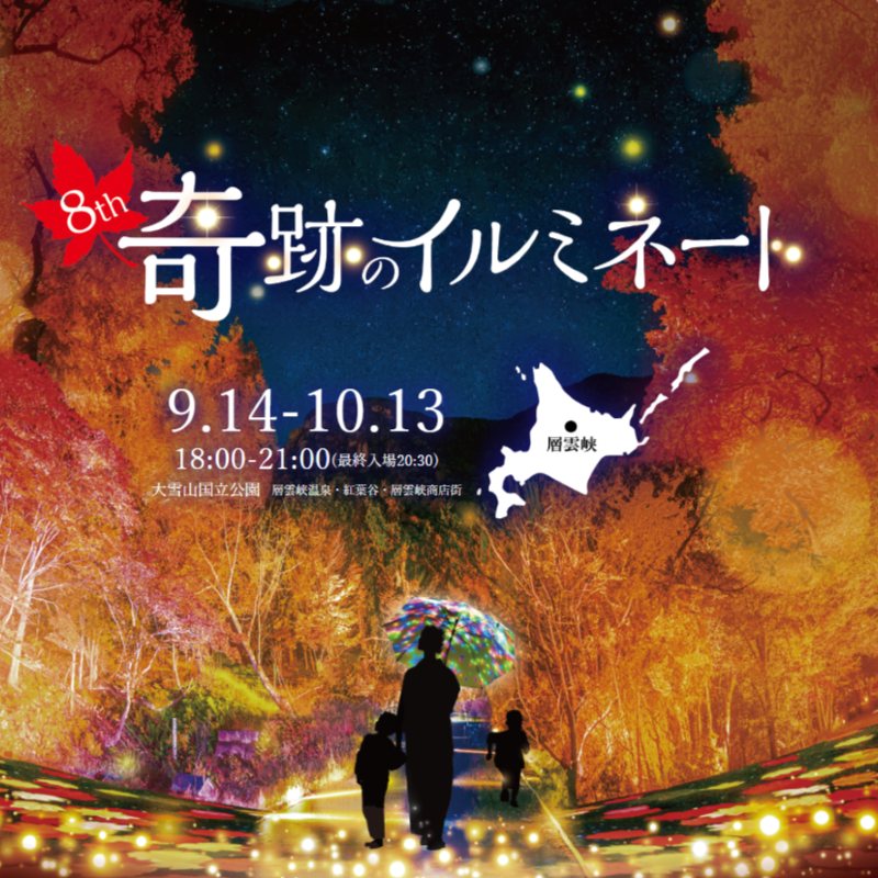 日本で一番早く、燃えるような紅葉が訪れる北海道・大雪山系。その麓に広がる上川町の層雲峡温泉では、2025年も秋の夜を幻想的に彩るライトアップイベント「奇跡のイルミネート」が開催されます。日中は太陽の光を浴びて輝く絶景が、夜には柔らかな光に照らされ、紅葉谷は昼とは全く違う幽玄な姿を見せます。