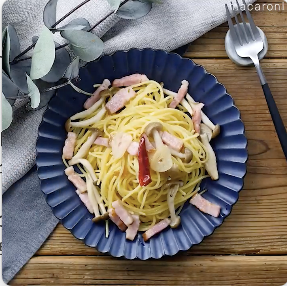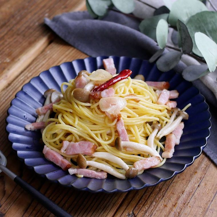 6: ゆで上がったスパゲッティを加えて全体を絡めたら、器に盛って完成です。