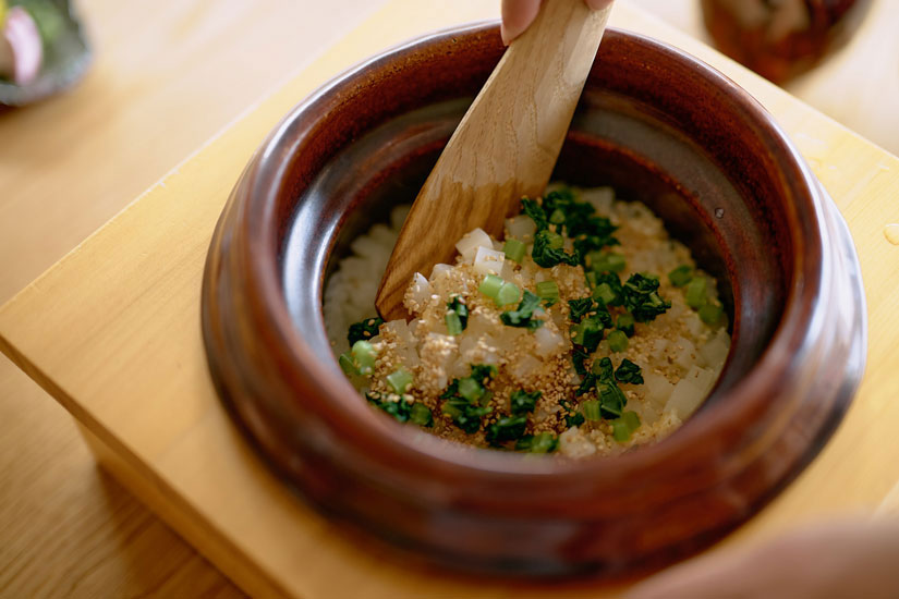 塩尻市産の野菜や木曽の食材など、なるべく地元の食材を利用し、だしやしょうゆ、塩、砂糖などシンプルな調味料を使った体にやさしい和食を提供しています。味つけは食材そのものを味わえるように重視されており、主張しすぎないシンプルな料理が楽しめます。