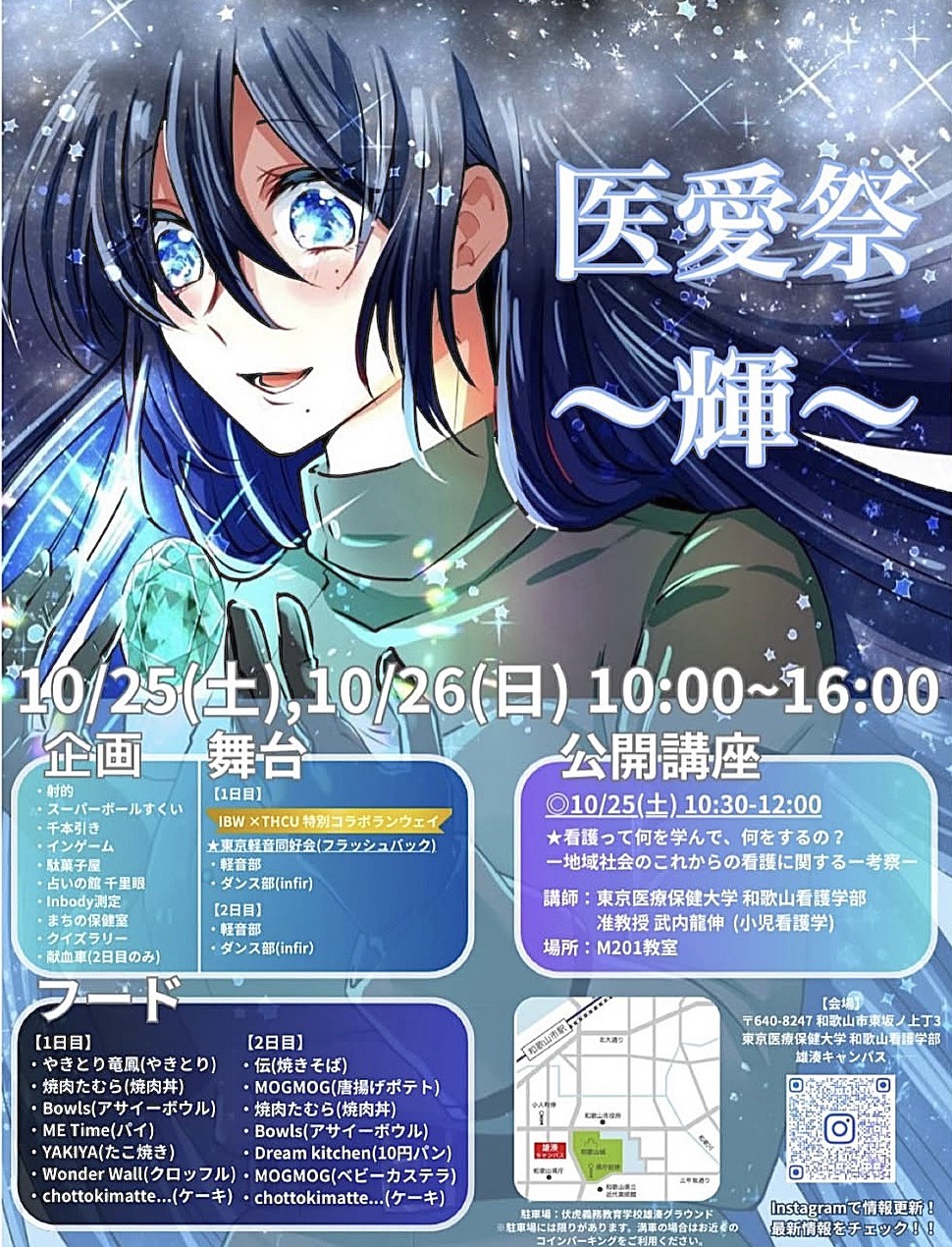 2025年のテーマは「輝」。医愛祭に参加するすべての人が、それぞれの個性や想いを大切にしながら輝けるようなイベントにしたいという思いが込められ、困難を乗り越えて未来に向かう力強さや、喜びや感動を分かち合う温かさも表現されています。