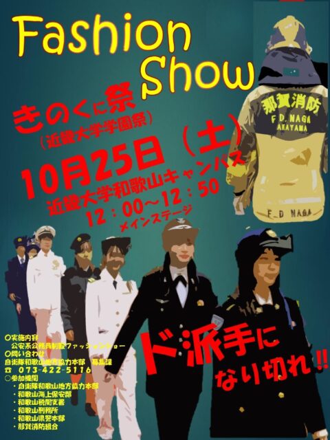 10月25日(土)12:00~12:50には、公安系公務員制服のファッションショーが行われます。