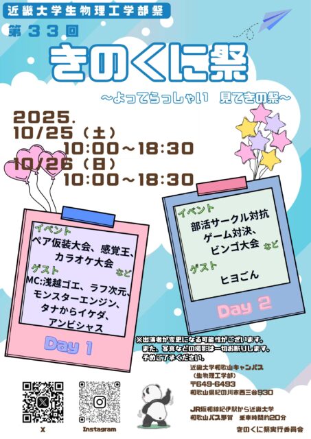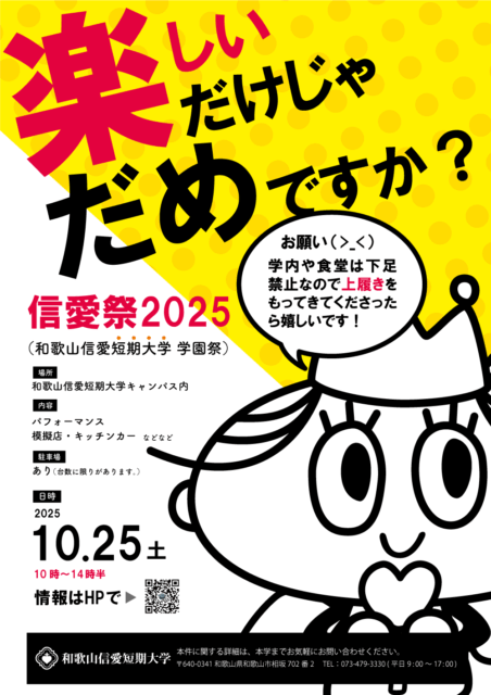 1 信愛祭2025(和歌山信愛短期大学)2 第33回きのくに祭(近畿大学生物理工学部)3 医愛祭(東京医療保健大学)4 和大祭(和歌山大学)5 和信祭2025(和歌山信愛大学)