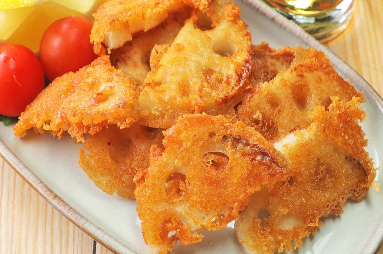 れんこんを切って、市販の唐揚げ粉をまぶして揚げ焼きにするだけ!外はカリッ、中はホクホクの食感がたまらない、「れんこんの唐揚げ」のレシピをご紹介します。