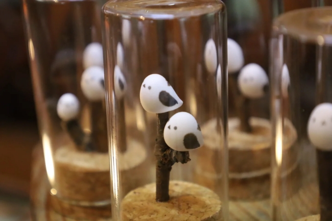 ホテルに隣接する森の中に15棟のログハウスが連なるショッピングエリア『ニングルテラス』各店舗では、ここでしか出会えないオリジナルのシマエナガグッズが販売されます。