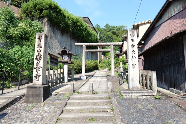 『日向大神宮』へのアクセスは、地下鉄東西線・蹴上駅から徒歩約15分。1番出口の利用が便利です。出口を出て左手に数分歩くと、入口である『一の鳥居』が見えてきます。