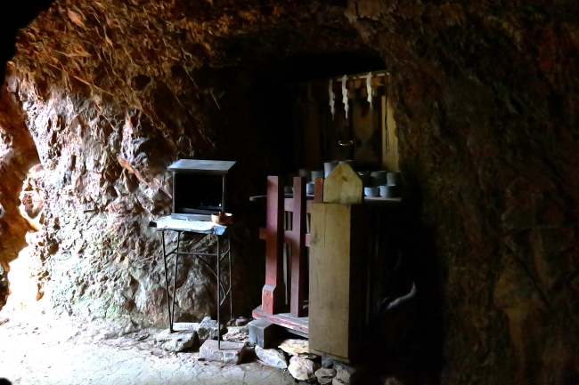 穴に入り進んだ先には、開運厄除けの神様が祀られている『戸隠神社』があります。その御前には願い事を記した“かわらけ”がたくさん奉納されていました。