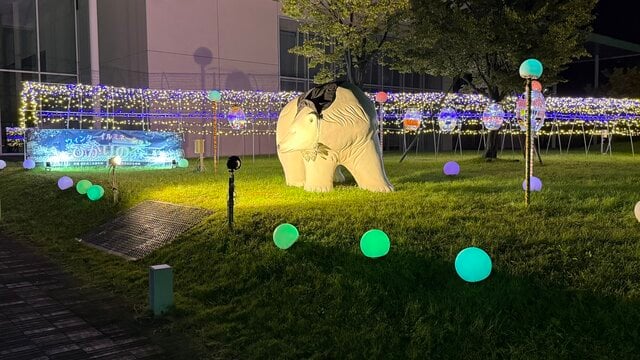 2025年10月24日(金)~12月31日(水)の期間中、新潟市北区文化会館前の「豊栄メモリアルガーデン」にて「とよさかイルミネーション2025~モンスターの宴~」が開催されています。