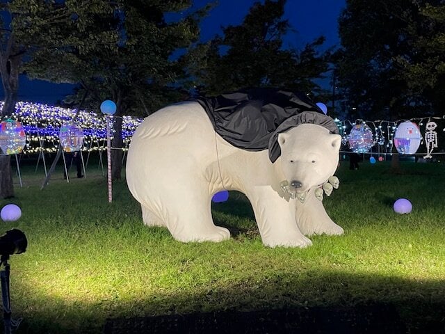 イルミネーションで作られたひかりの森には、北区の冬の風物詩となっているあのシロクマが帰ってきました!