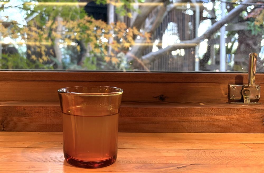 まず、ウエルカム酵素ジュースが運ばれて来ました。『NICO MACO』(有田川町)の温かい酵素ジュースが心に沁みます。この日は、ゆずの酵素ジュースでした。
