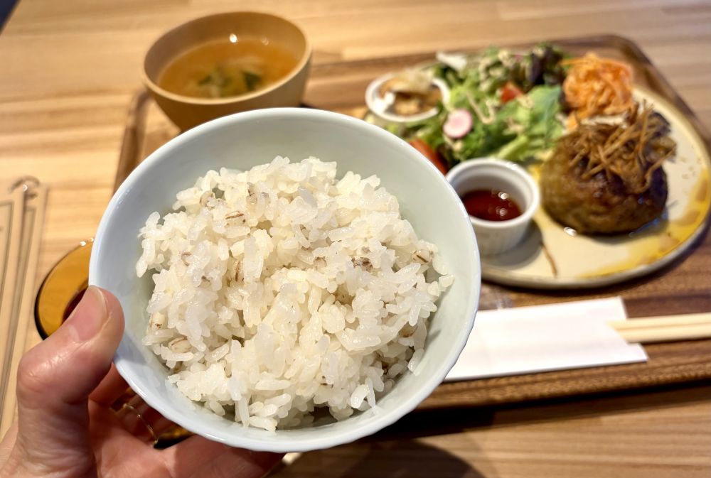 『On』で提供しているごはんは、「和歌山の米+国産だいしもち麦」。国産だいしもち麦は、白米に比べ食物繊維が約20倍もあると言われています。