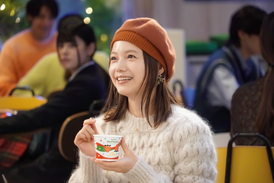 妹役の広瀬さんの「寄ってく?」のひと言をきっかけに、2人は途中下車してマクドナルドへ。“今だけのいちご”こと「マックフルーリー 苺 オレオ クッキー」をかき混ぜながら、PUFFYの「これが私の生きる道」をご本人歌唱の替え歌で口ずさみ、期間限定のホリデーマックフルーリーを楽しむ内容。