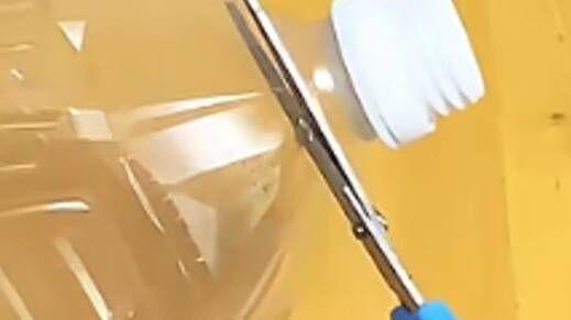 2. まだ熱さが残る状態の栗を取り出したら軍手をして栗をもち、栗の底の部分を少し削り取るか切れ目を入れる