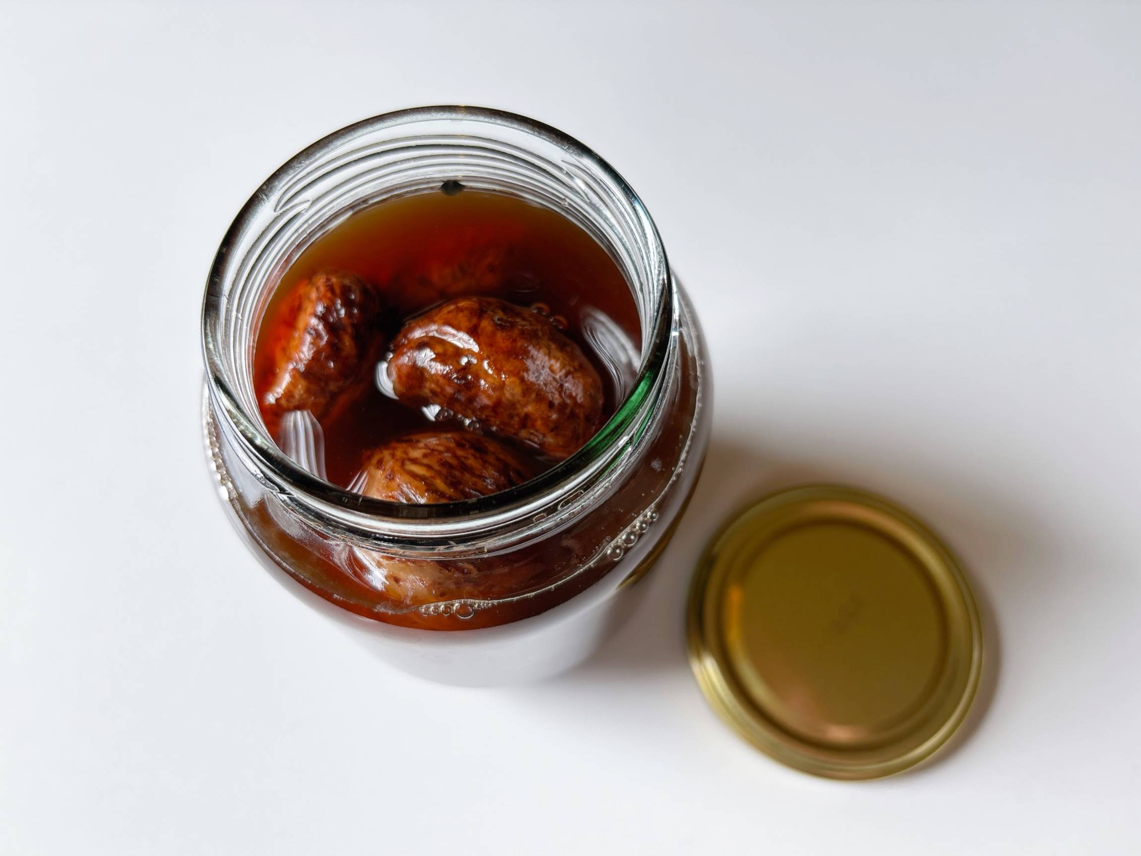 煮沸消毒した保存瓶に煮汁と共に入れて密封し、冷蔵保存します。2週間ほど保存可能です。