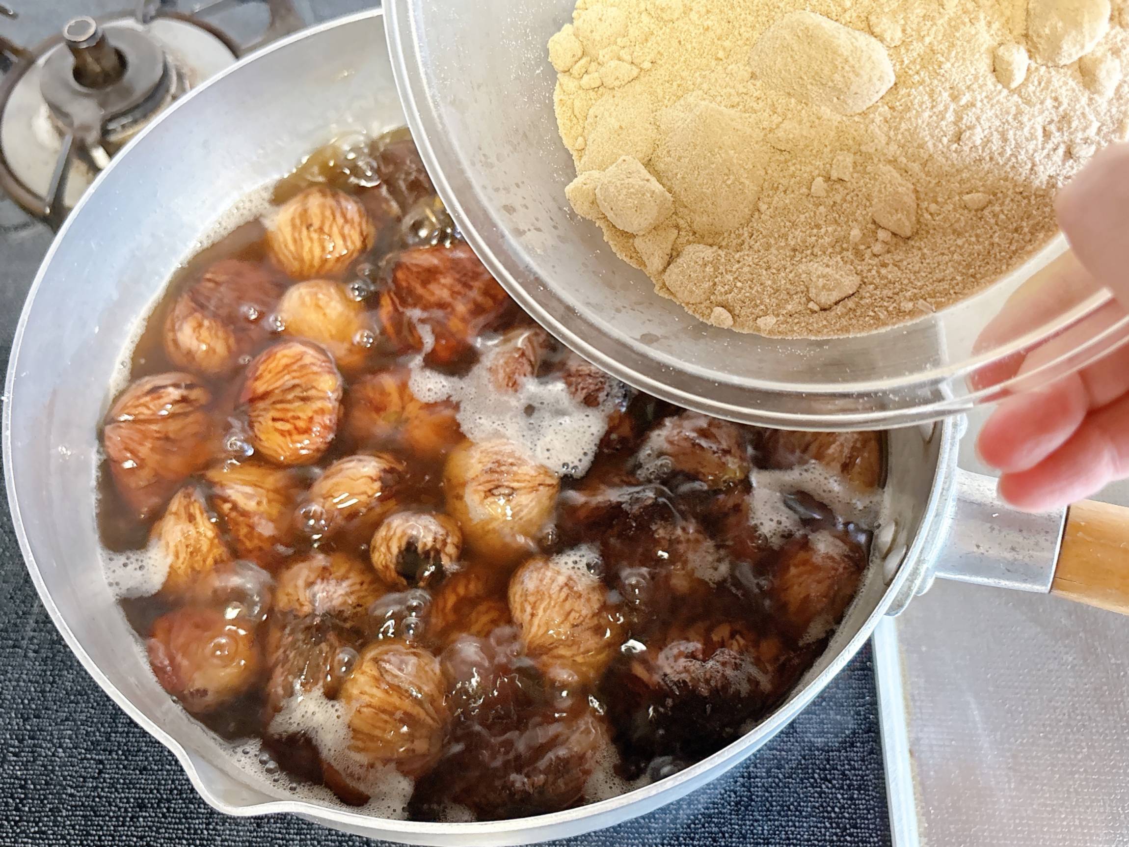 残りのきび砂糖を加え、さらに20〜30分煮て火を止めます。