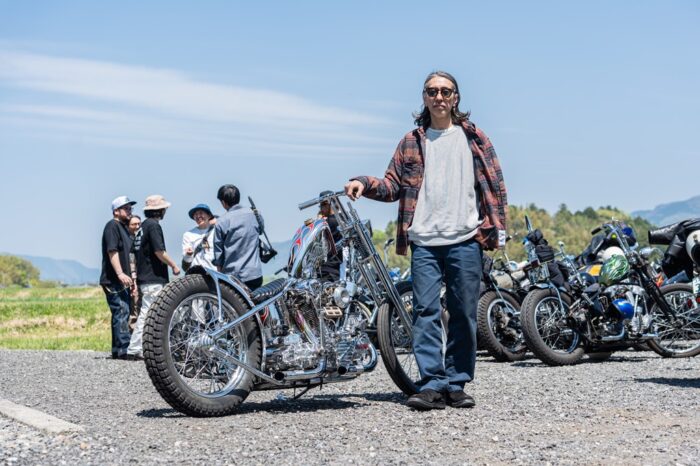 京都「LUCK MC」の杉原さんは、昨年ショーでお披露目したフルスクラッチで参加し、カスタムが飾りでないことを証明。肉厚なパイプから削り出した立体フレイムスの骨格など圧倒的な造形美が光る。足元はラフアウトのロメオを愛用。