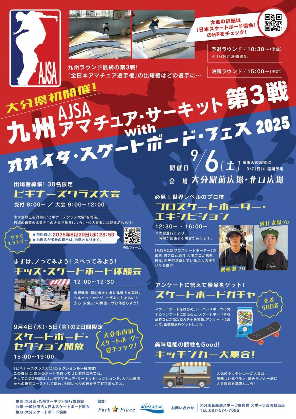 大分市で『AJSA九州アマチュア・サーキット第3戦 with オオイタ・スケートボード・フェス2025』が開催されます。