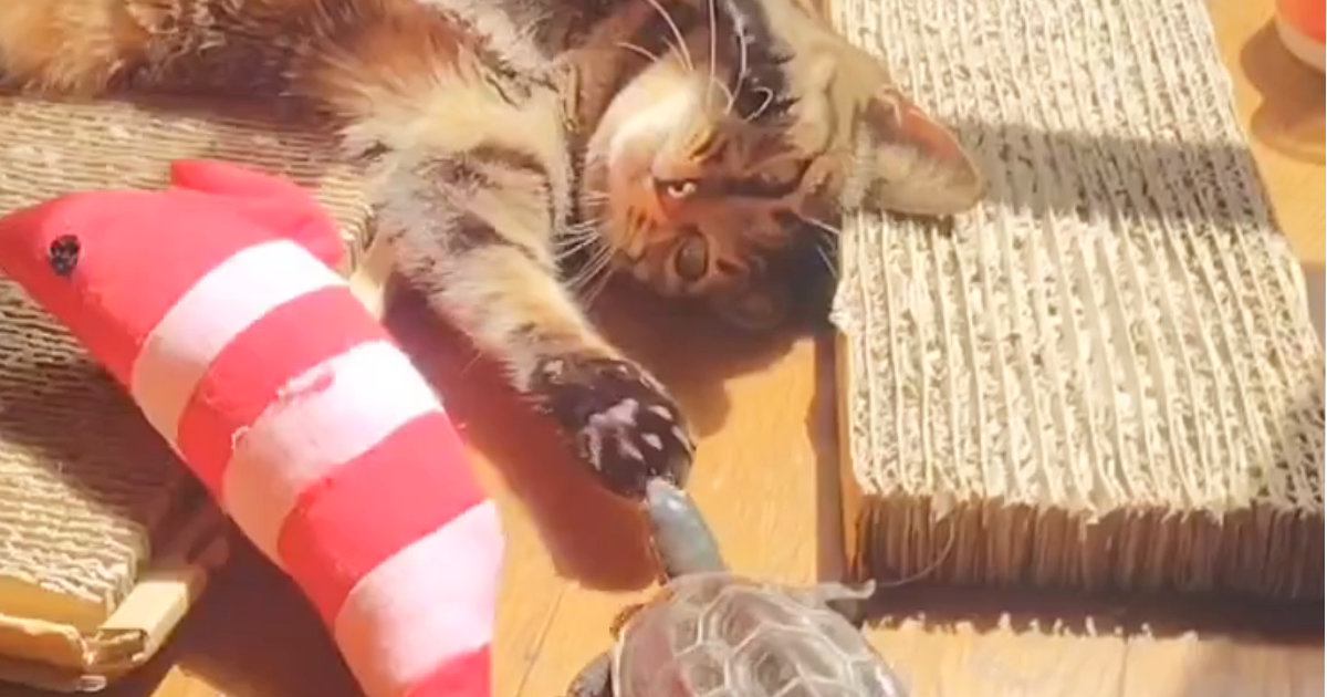 保護された『猫と亀』→いっしょに暮らし始めて3年…現在の『心温まる日常の光景』に2万いいね「ベストフレンド」「失われた野生w」