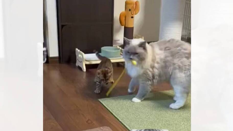 ドアを開けたら、飛び出してきたネコ→『おでこに何かついている』と思ったら…『まさかの光景』に「左にスライドしたくなるwww」と爆笑