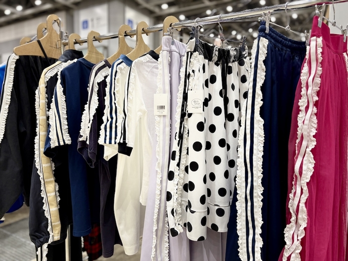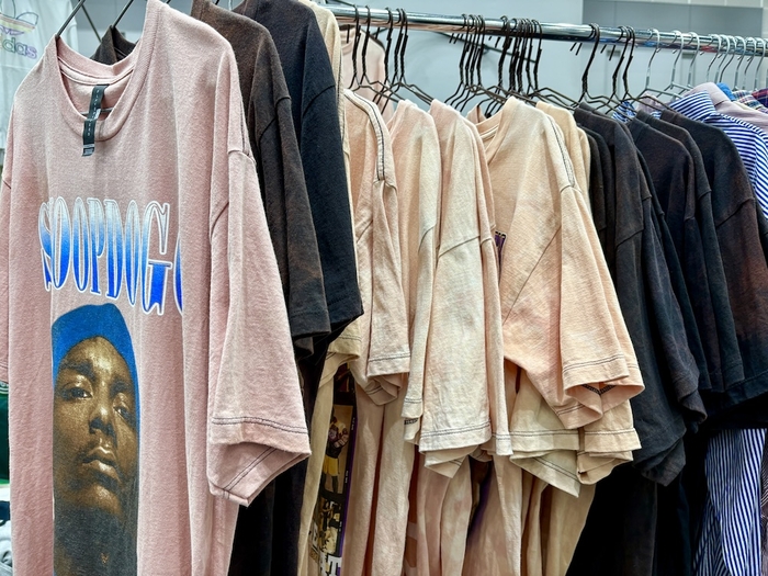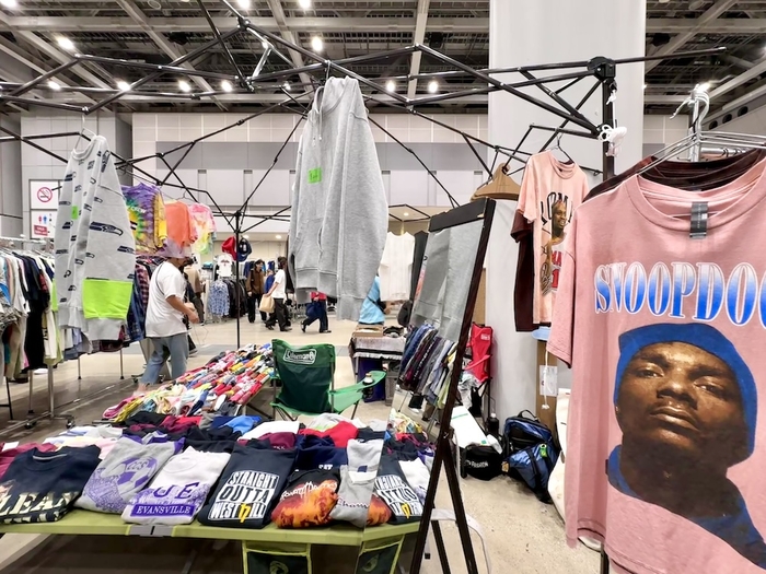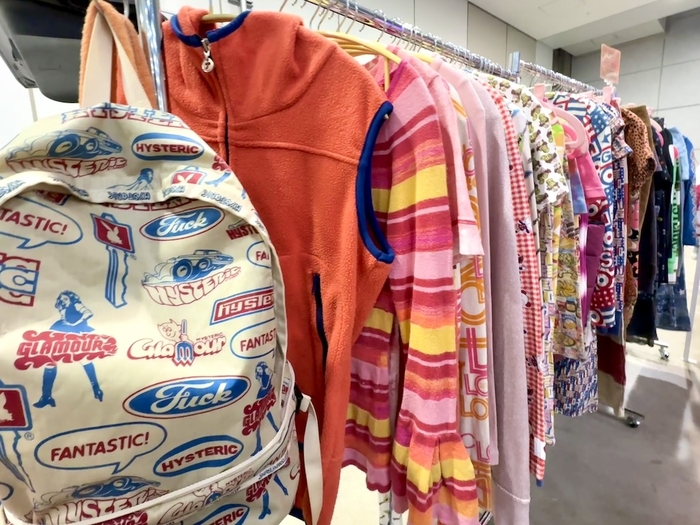 ギラギラと輝くピンクの屋根を目印にたどり着いたのは、「デザインエリア」にある「マンモーニバイモンチャン」のブースである。こちらは昨今流行りのY2Kアイテムを揃えるショップ(Y2K=「Year 2000」の略で、西暦2000年頃のファッションや文化を指す)。お客さんは10代〜20代のファッション感度の高い女性が多いそうで、取材中にも多くの女子が楽しそうに買い物をしていくのが印象的だった。