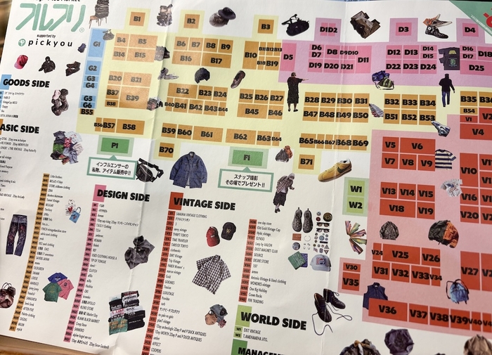 また『フルフリ』の特徴のひとつとして、事前に公式サイトやInstagramで会場マップが公開されているのが嬉しい。目当てのショップを見つけやすく、買い物ルートのイメージトレーニングだってできる。とはいえ会場では実際にマップを広げている人は意外と少数で、多くの来場者は「ローラー作戦」を採用しているように見えた。どの店舗も雰囲気がよくレベルが高いので、結局は隅々までチェックしたくなるのだろう。