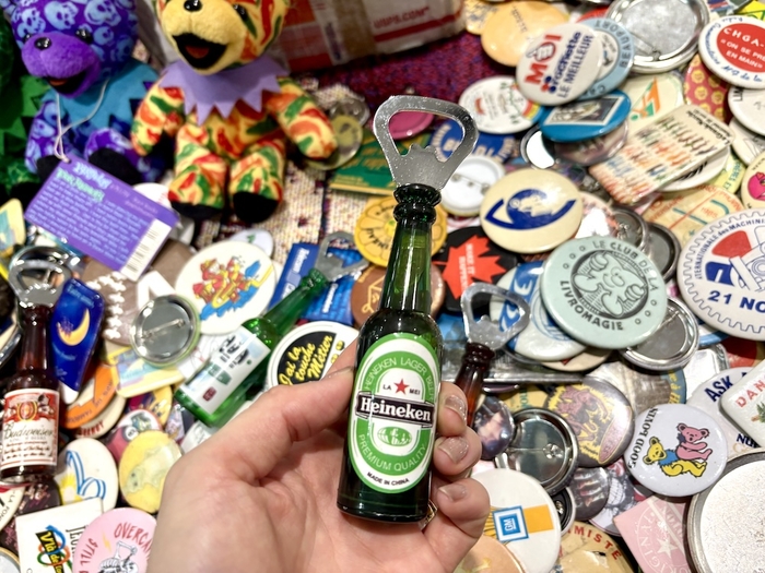 「PARK:D」のブースでは、レトロなアクセサリーや雑貨がALL均一価格でどっさり販売されていた。アイテムはひとつ買うと600円だが、3点、5点、10点……と購入点数に応じて単価が下がり続け、最終的に10点で3,000円になるという。それならば10点買いたくなるのが人というもの。購入用トレイを片手にアイテムを吟味する人で賑わっていたのも納得である。