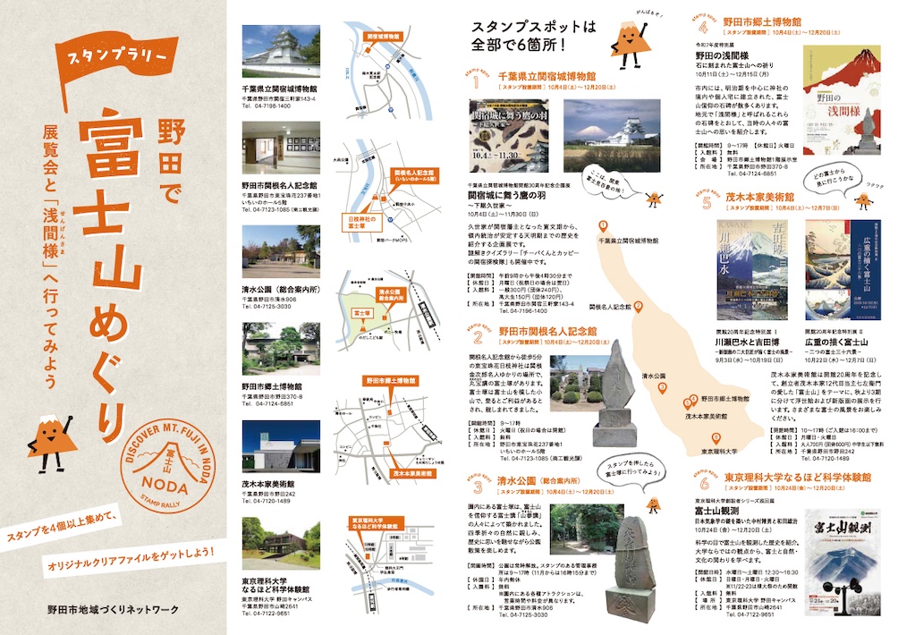 「関東の富士見百景」にも選定されるなど、野田市から見える富士山の美しさは折り紙付き。そんな市内の「富士山」スポットや展覧会を巡るスタンプラリーが開催中です。