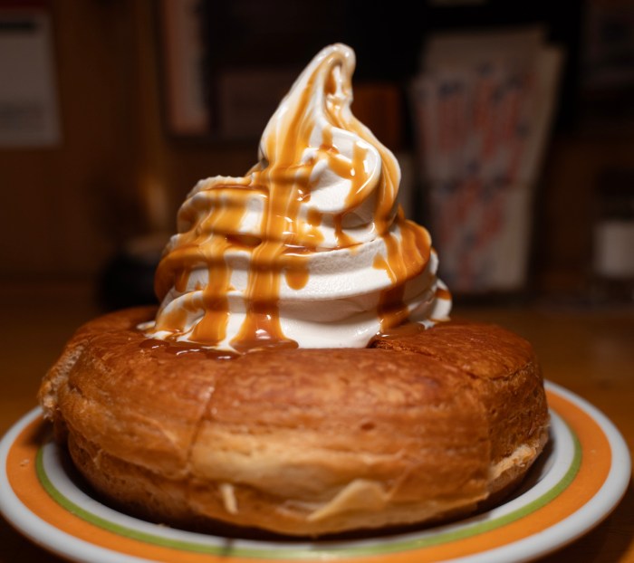 しかしシロノワールの場合、ソフトクリームの量次第で風味のバランスが乱される恐れがある。ソフトクリームが多すぎると、せっかくのキャラメルソースのテクい苦みが減衰してしまうのだ。