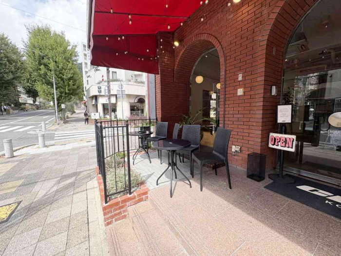 北野坂をパールストリートまで下りた角にある『THE CITY DONUTS AND COFFEE』には、歩いて2分ほどで到着。お店の人に声をかけ、テラス席に座ります。