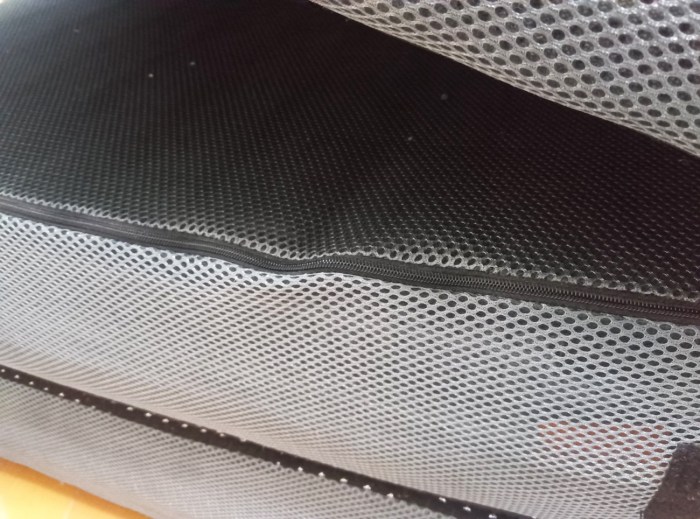 一方で、気になったのがファスナー。実はこのマットレス、中身のウレタンの順番を入れ替えることで低反発にも高反発にもできるというのが特徴の1つなんだけど、1度入れ替えようとしたところギュウギュウすぎて開けたファスナーを閉めるのが大変だった。