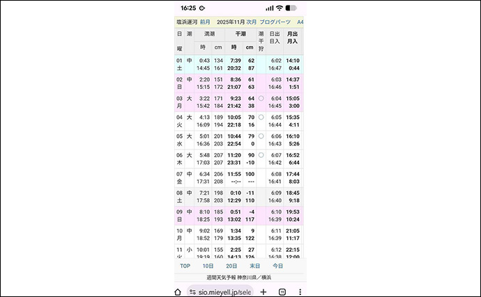タイドグラフ(潮位)を確認し「この水位ならここだ!」というポイントを複数箇所知っておく必要がある。小潮、中潮、大潮と最低でも3箇所は用意しておくことをおすすめする。