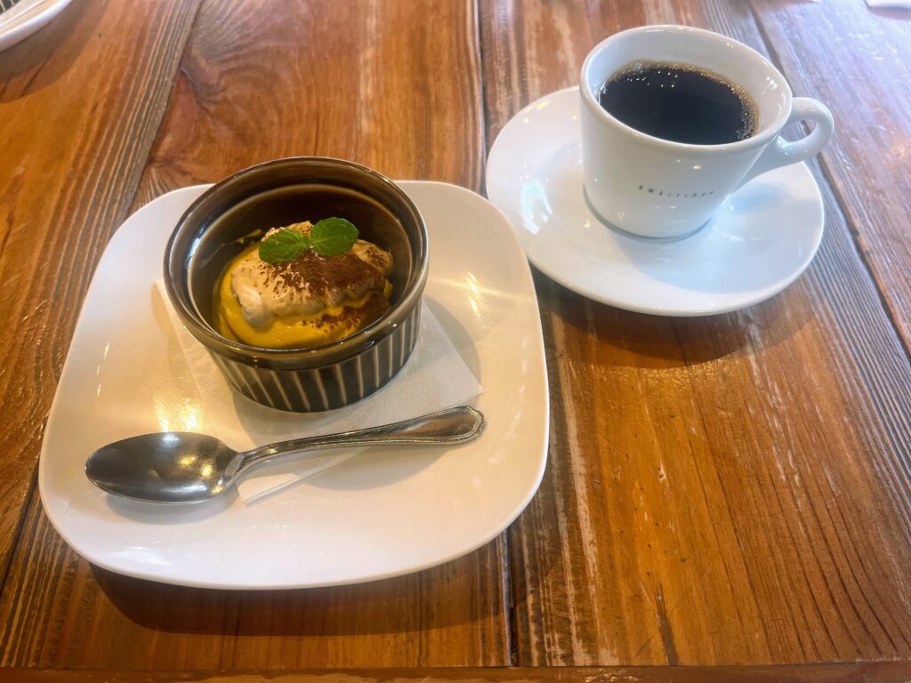 食後には、デザート&カフェセットも注文。この日のデザートは「かぼちゃのパンナコッタ」でした。