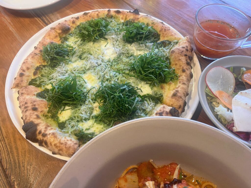 ピザは看板メニューのひとつ「しらすと大葉、バジルのジェノベーゼ ‘KAMAKURA’」を注文しました。