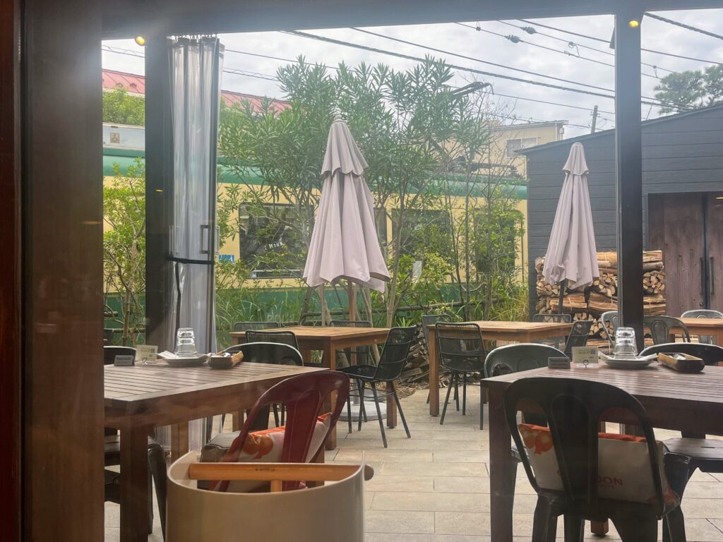 由比ガ浜大通りに面した側には木々がたっぷりと植えられているため、外からは店内の様子がほとんど見えません。そのおかげで、街中とは思えないほど静かで落ち着いた空間の中、食事を楽しむことができます。