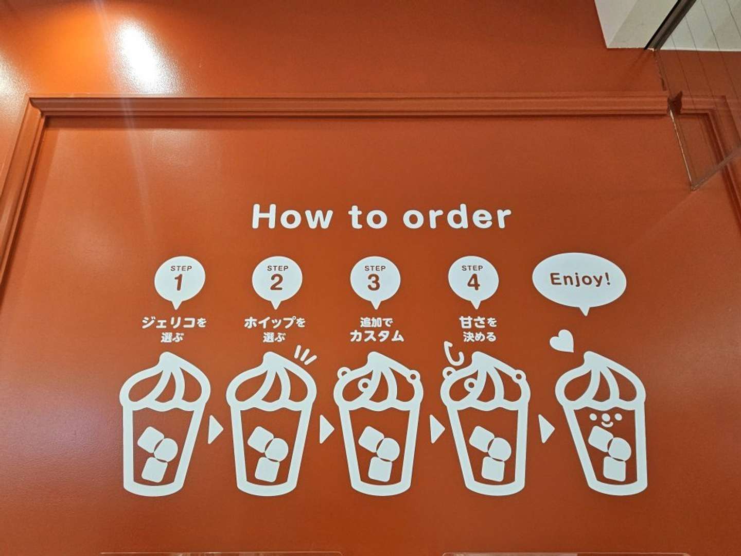 メニューからジェリコのフレーバーを選んだら、上にのっけるホイップもミルク・チョコ・抹茶の3種類から選ぶ。この後、追加料金を払うことで、トッピングも増やせる。