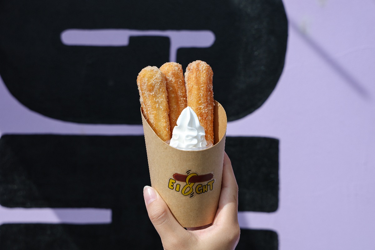 『EI8GHT(エイト)』は、米粉と米油を使用したグルテンフリーの生チュロス専門店。