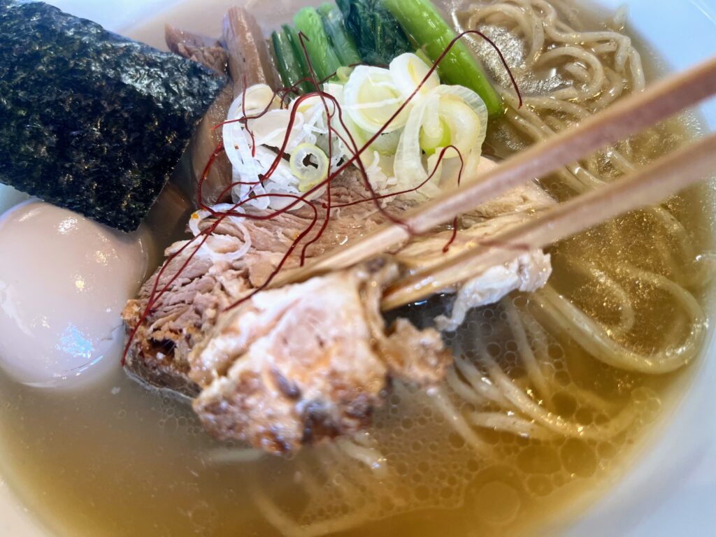 ひと口飲むと塩の旨味がふわっと広がり、後味は驚くほどすっきりしていて、脂のコクもほどよく、スープも最後の一滴まで飲み干したくなるほど。上品で飽きない味です。