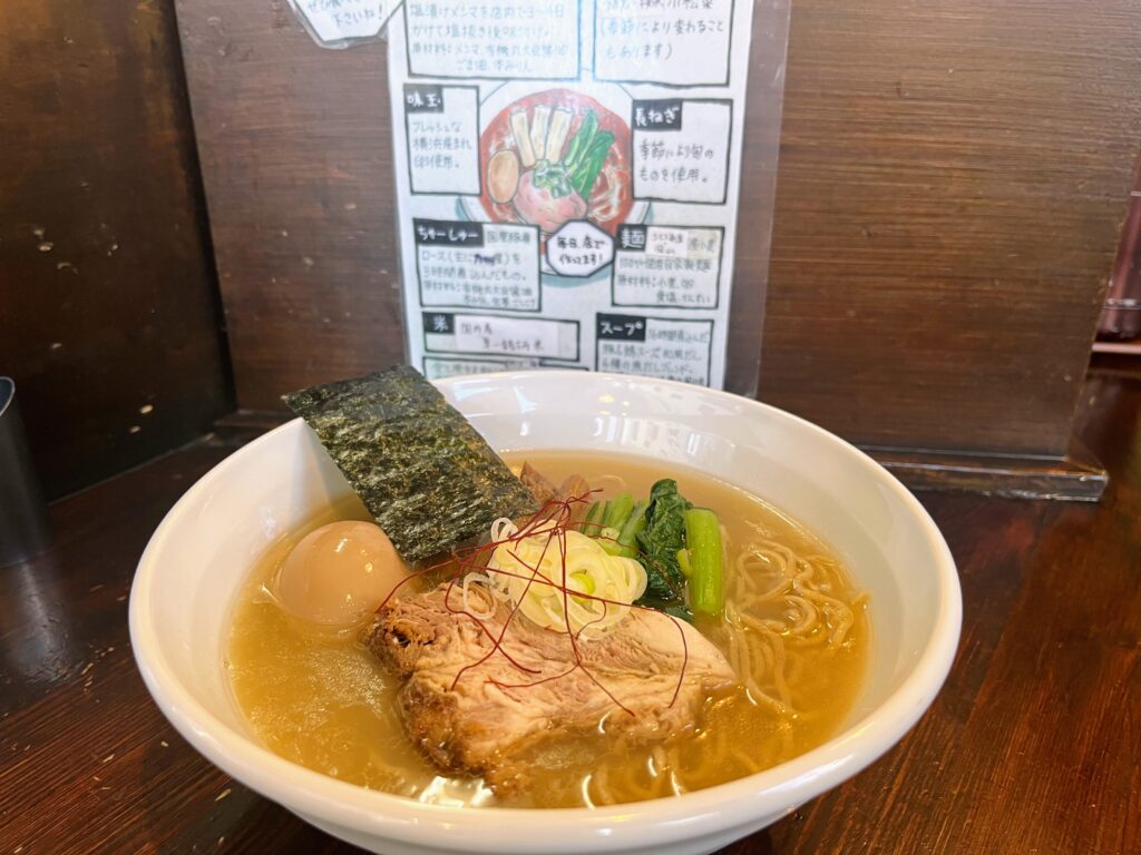 一番人気の「和風らーめん」と迷いましたが、今回は「味玉塩らーめん」を注文しました。